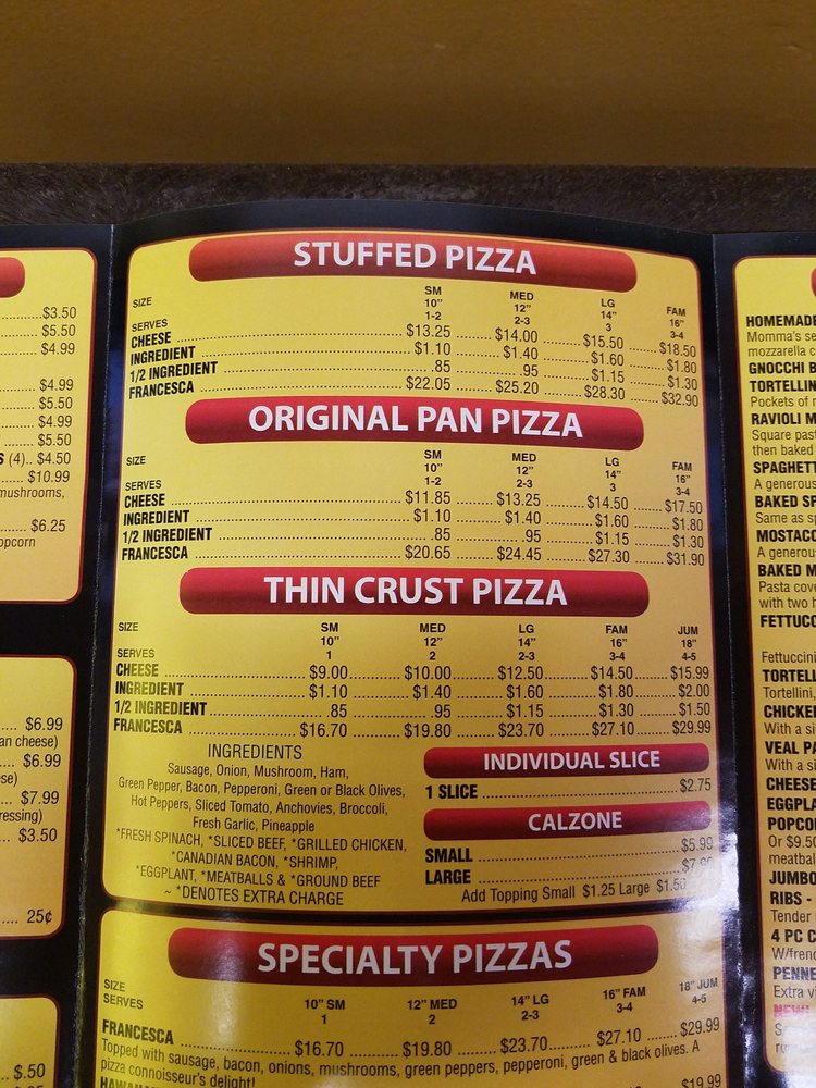 Welcome to Francesca Pizza, a hidden gem nestled in Sheridan, IL. This Italian eatery specializes in handmade pizzas that are nothing short of sensational. With an extensive menu, you can indulge in their famed Monster Pizza, a massive creation rich in flavor courtesy of their secret sauce. For those seeking balance, the Francesca’s salad is heaping with fresh veggies, making it a worthy accompaniment.